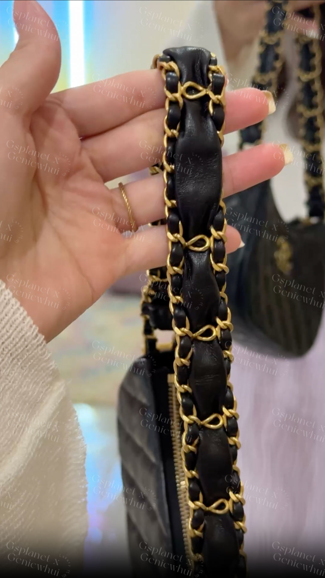 Leather-interlaced chain strap for comfortable underarm carry