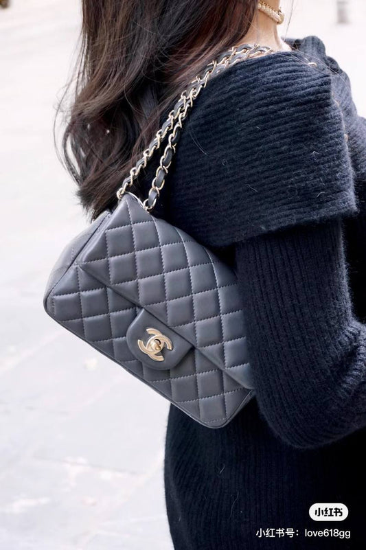 Celine CHAIN SHOULDER BAG CLAUDE IN SHINY CALFSKIN BLACK
