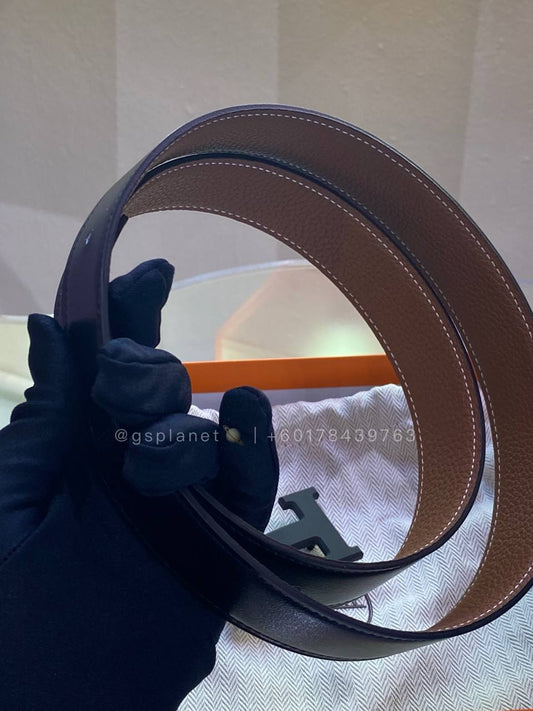 H Guillochee belt buckle & Reversible leather strap 32 mm