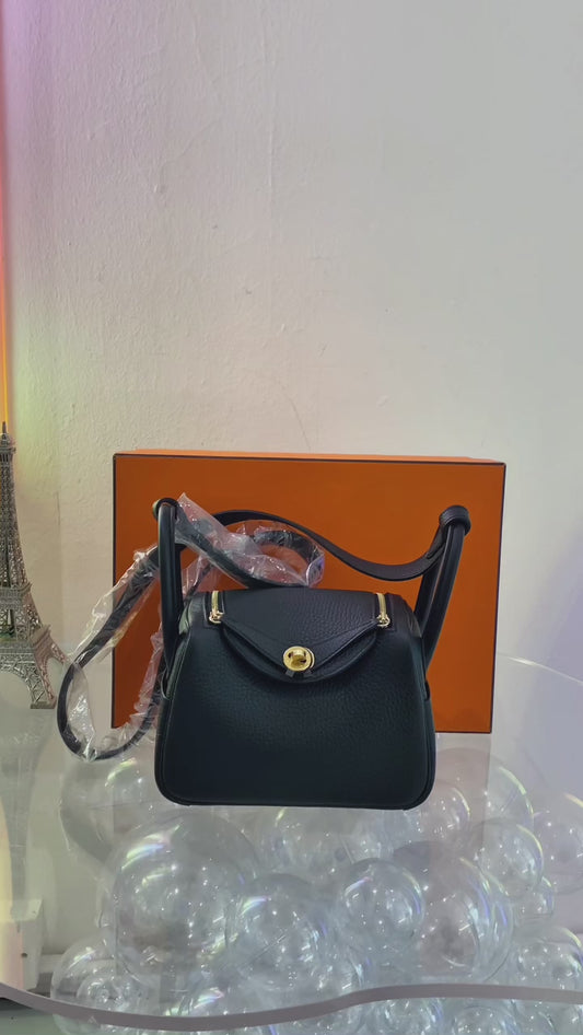 HERMES MINI LINDY黑金扣