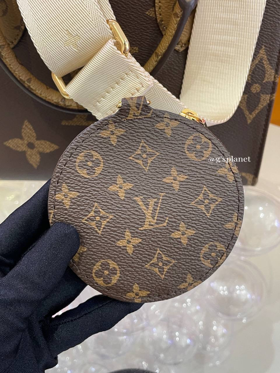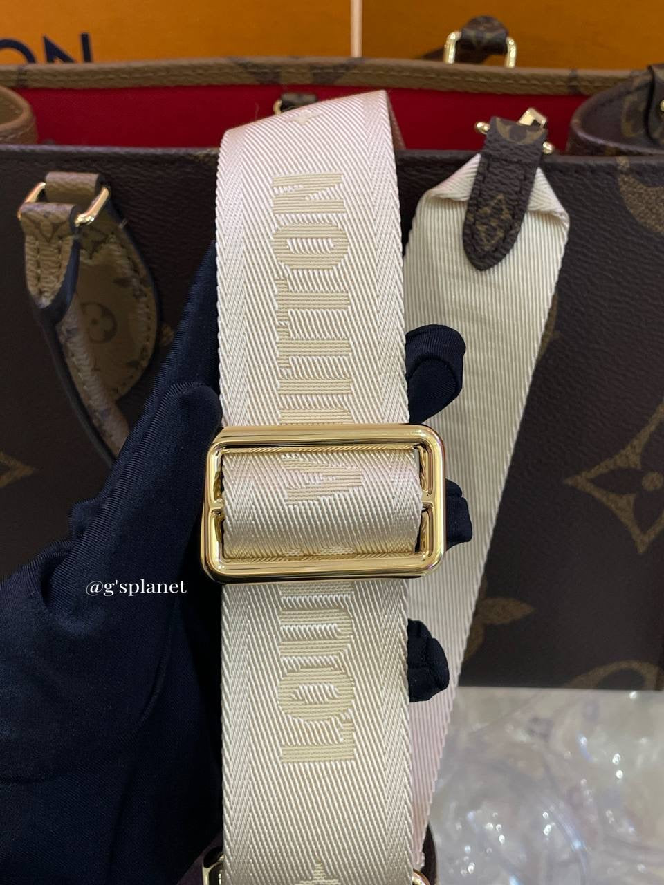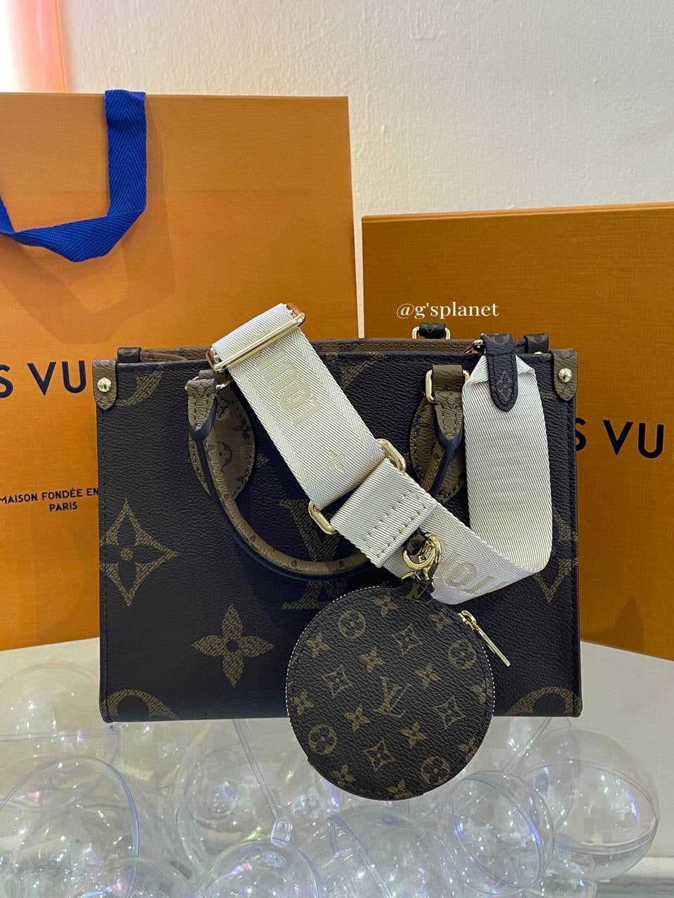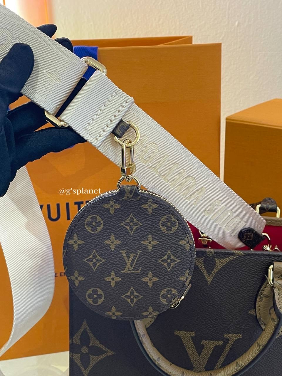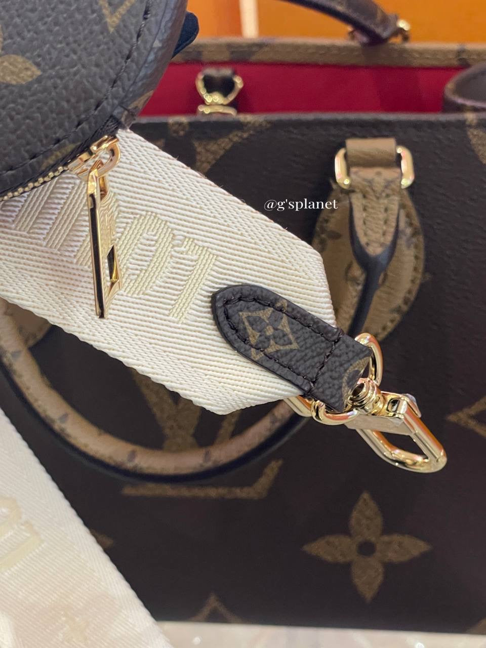 Both fashionable and functional, this OnTheGo PM tote is an ideal everyday companion. Made from a mix of Monogram and Monogram Reverse canvas with the on-trend Giant pattern, it is fitted with Toron handles and a signature woven jacquard strap in contrasting crème beige. The detachable coin purse is perfect for storing change or tiny treasures.