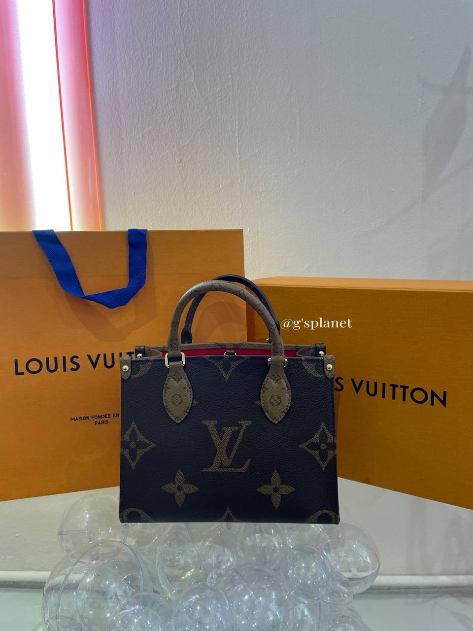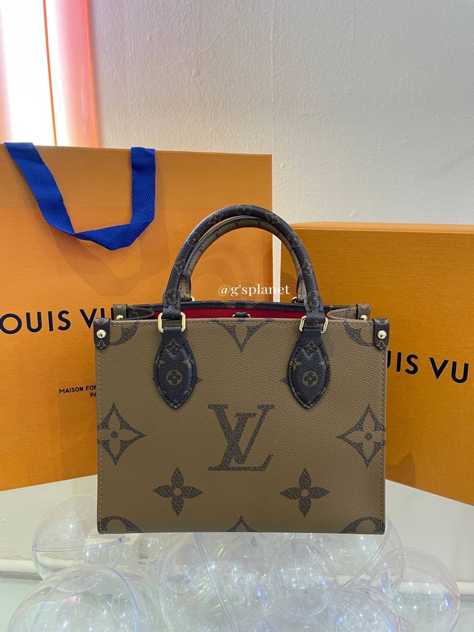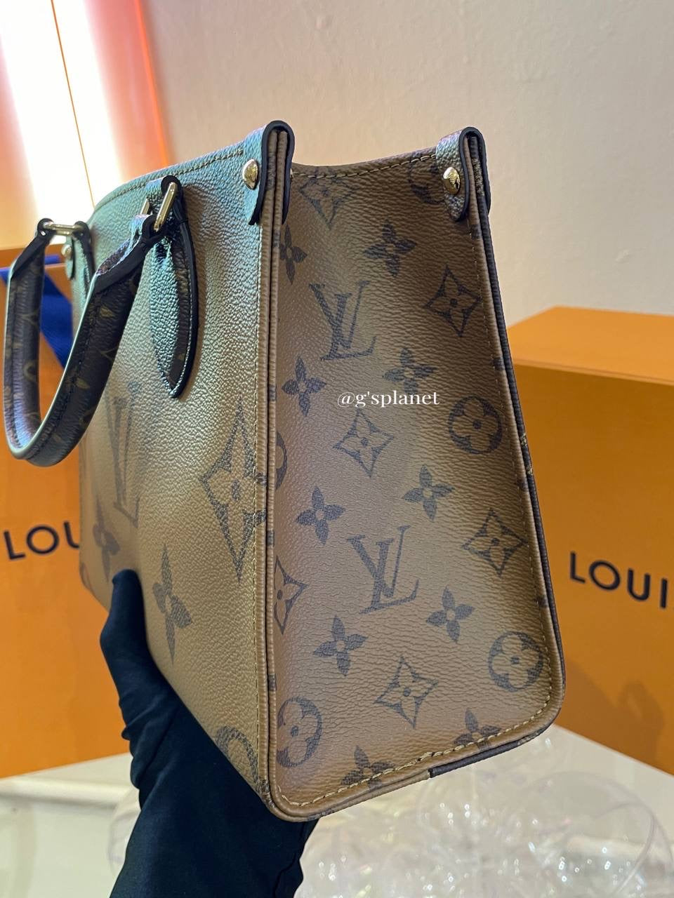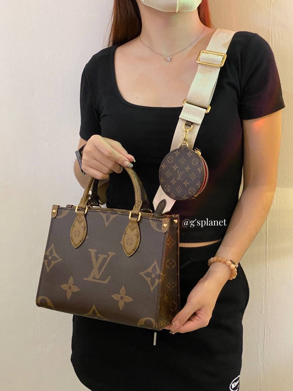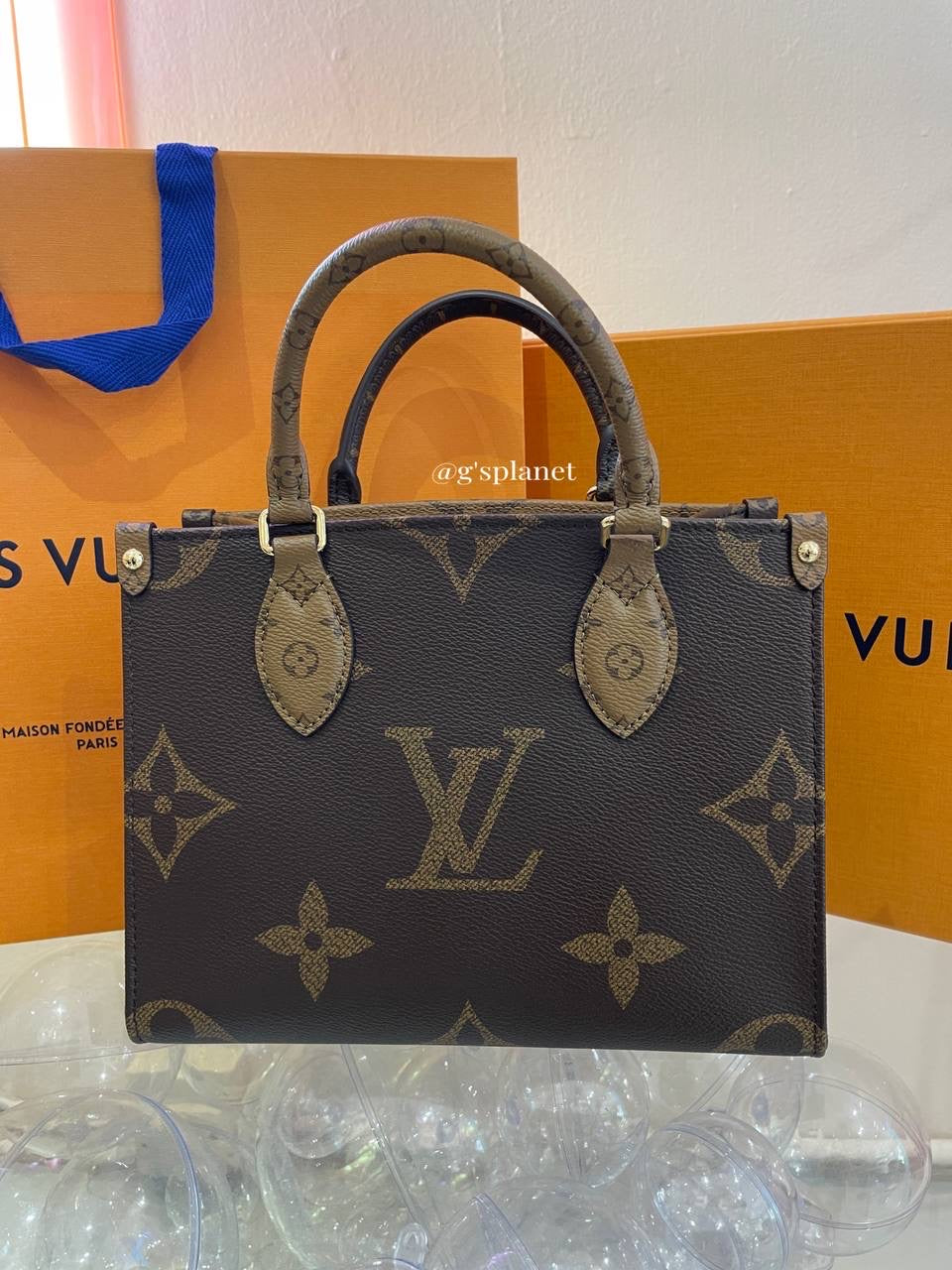 Both fashionable and functional, this OnTheGo PM tote is an ideal everyday companion. Made from a mix of Monogram and Monogram Reverse canvas with the on-trend Giant pattern, it is fitted with Toron handles and a signature woven jacquard strap in contrasting crème beige. The detachable coin purse is perfect for storing change or tiny treasures.