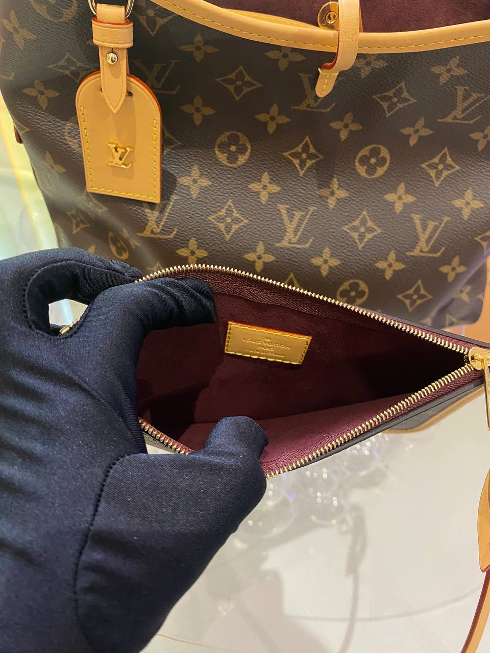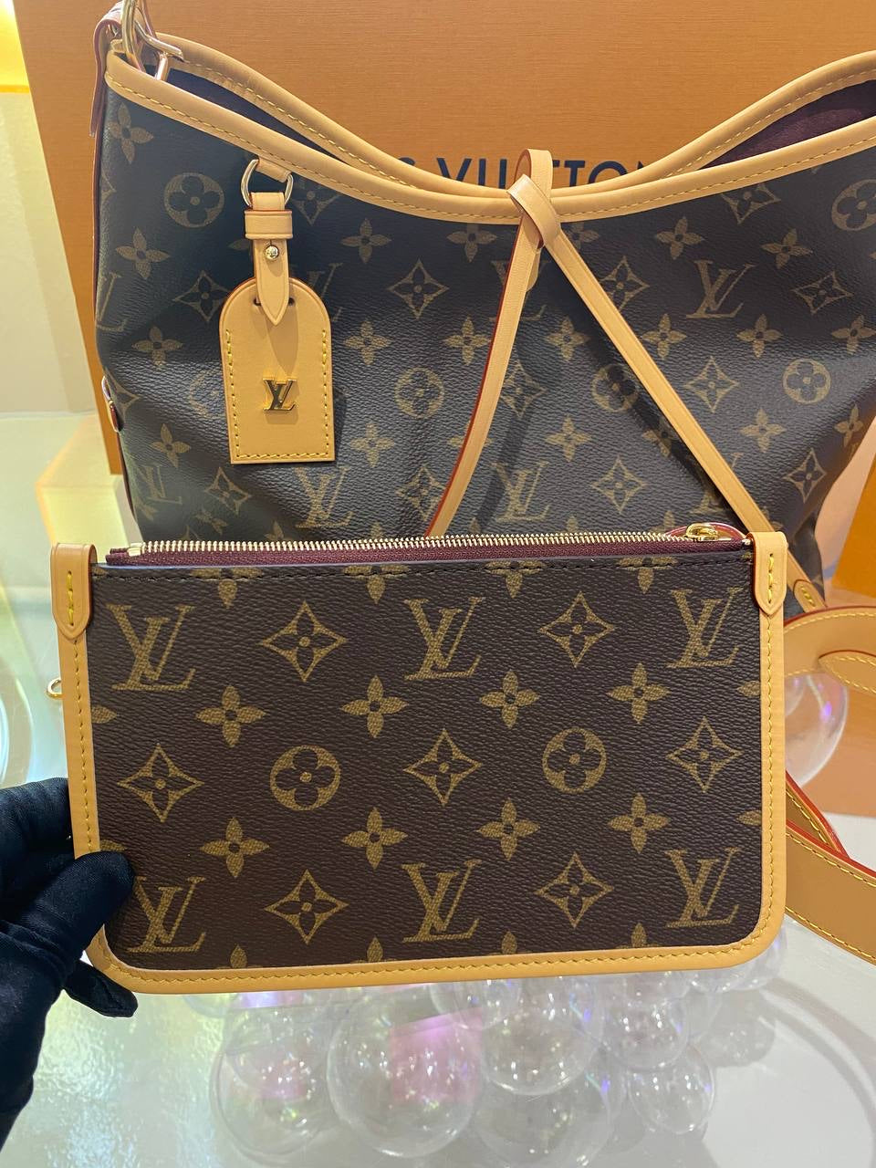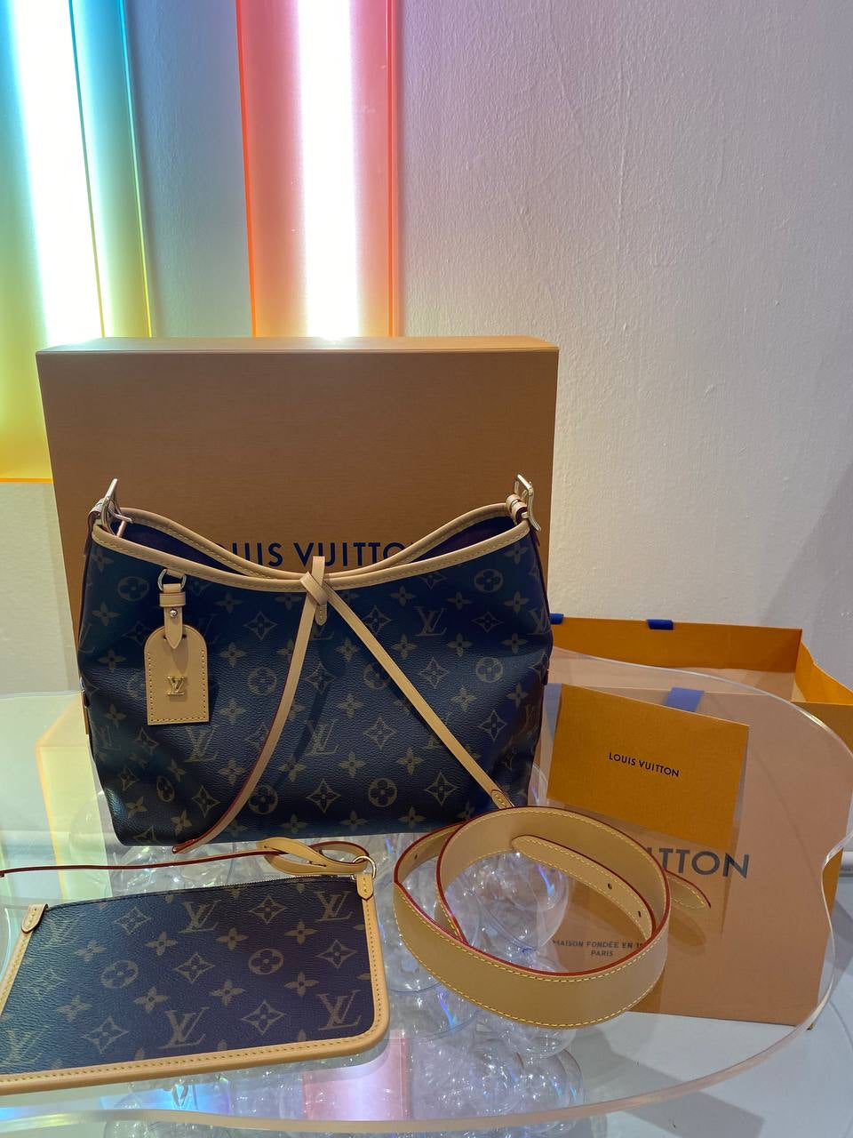 Combining allure with body-friendly design, the CarryAll PM handbag in Monogram canvas with natural leather trim is a go-everywhere city bag. Great storage capacity and a smartly designed interior, with two large inside pockets, makes it practical. A detachable zipped pouch, also in Monogram canvas, is attached to the bag by a leather strap.